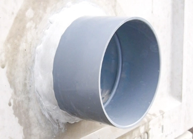 管路の内側やバックアップ材に、押しつける様に充填していくのがコツです。ミズストッパーを。10cm以上埋め込んでください。