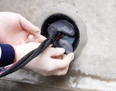 硬化しない素材のため、簡単に撤去や再充填ができ、将来の電線追加なども問題ありません。
