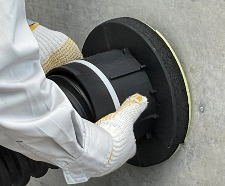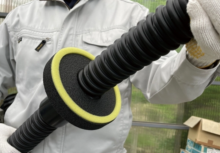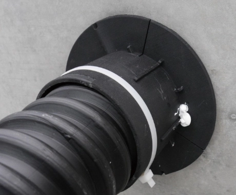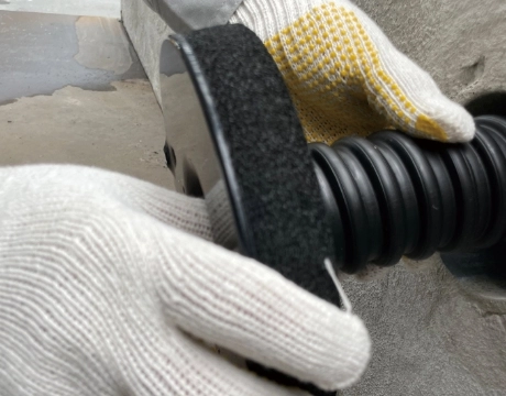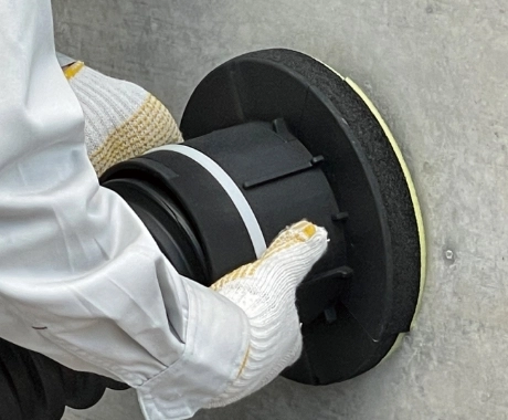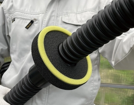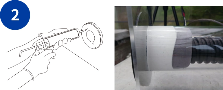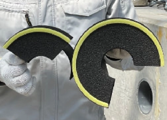 外側からFEP管をスリーブに挿入し、付属のスポンジをFEP管に巻き付ける