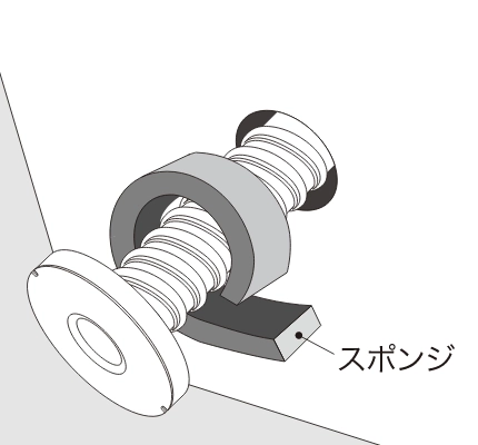 パッキンとスポンジの間を30mm確保し、スポンジを引っ張りながら巻き付けます。