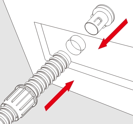 漏水を防ぐために、マウスと壁面に隙間ができないようにします。