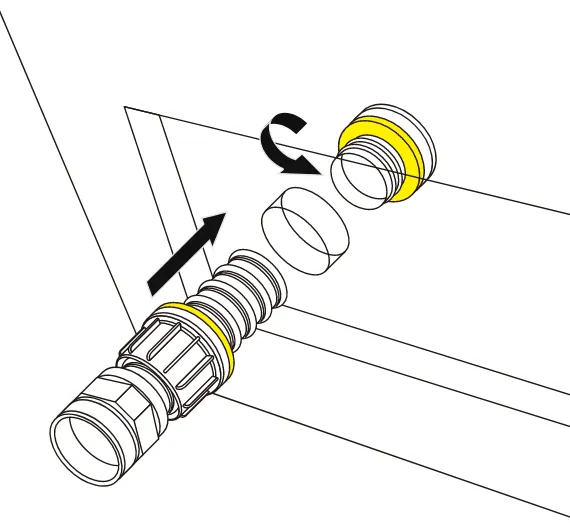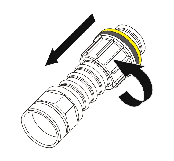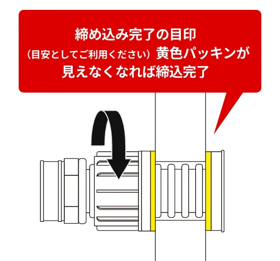 黄色パッキンが見えなくなるまでショートロックを締め込む